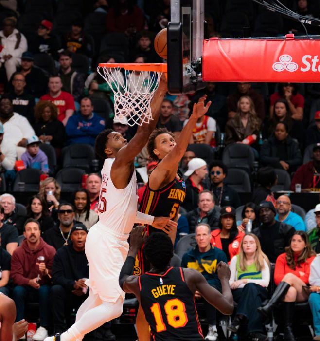 • 2025年11月29日 老鹰主场胜骑士 杰伦·约翰逊29+12+12 沃克28分 米切尔42分